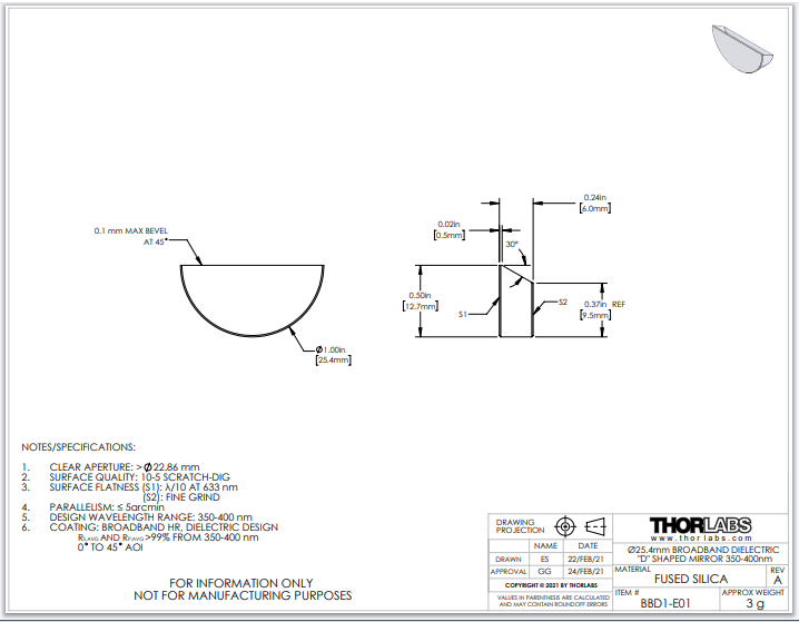 Thorlabs索雷博 BBD1-E01 D形反射镜