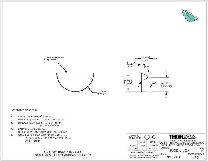 Thorlabs索雷博 BBD1-E03 D形反射镜