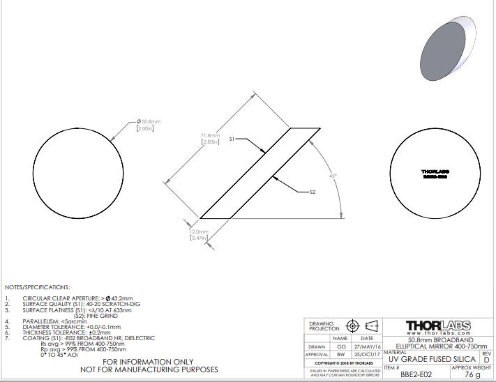 Thorlabs索雷博       BBE2-E02   椭圆反射镜
