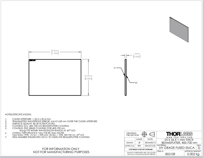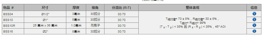 Thorlabs索雷博 BSS10R 紫外熔融石英平板分束镜