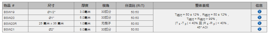 Thorlabs索雷博 BSW21 紫外熔融石英平板分束镜