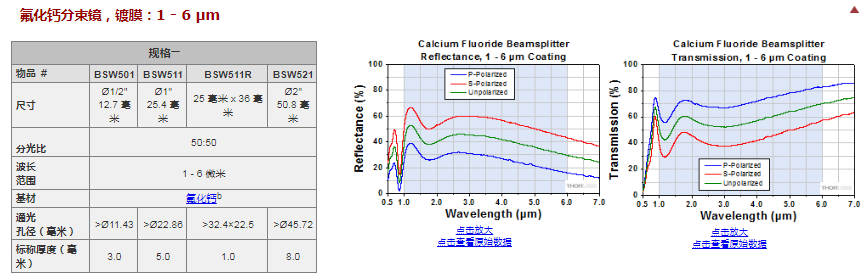 Thorlabs索雷博 BSW511R 氟化钙平板分束镜