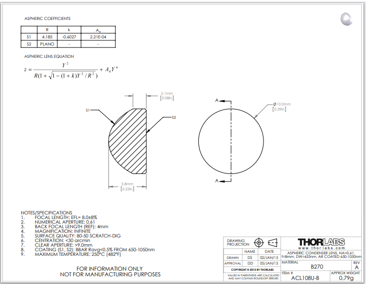 型号 ACL108U-B 非球面聚光透镜 品牌 THORLABS 索雷博