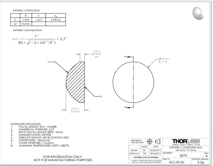 Thorlabs索雷博 ACL1815U 非球面聚光透镜