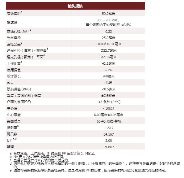 Thorlabs索雷博 AL2550M-A 非球面透镜