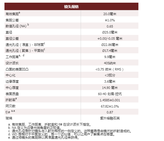 焦距公差±1.0%