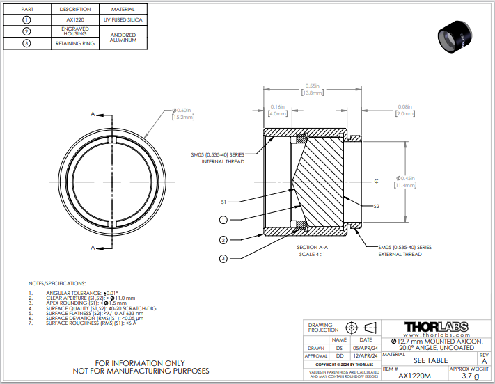 外壳螺纹 (内螺纹和外螺纹) | SM05 (0.535"-40) | SM1 (1.035"-40) |