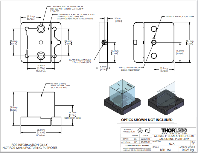 THORLABS 索雷博 BSH1/M - 平台安装座