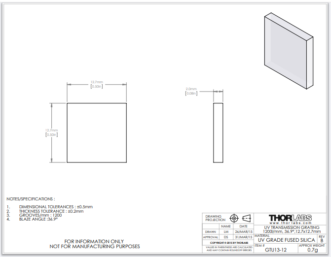 Thorlabs索雷博 GTU13-12 - 紫外透射光栅