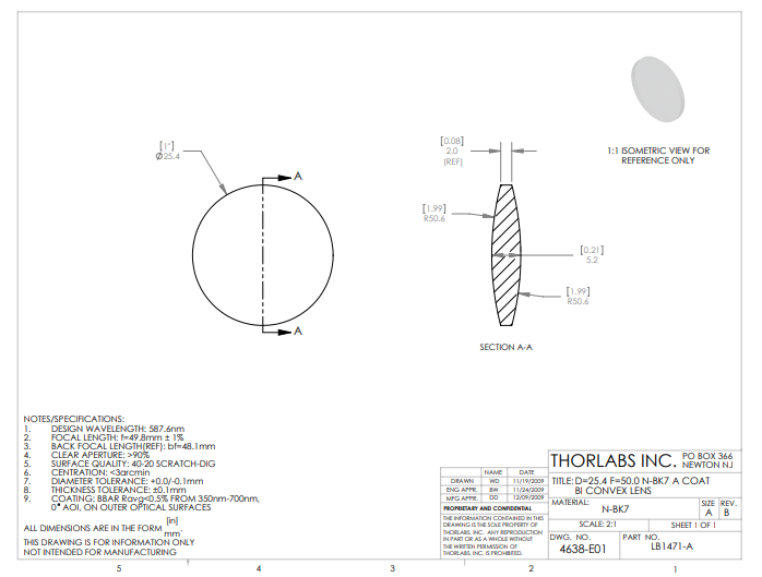 Thorlabs索雷博 LB1471-A 双凸透镜