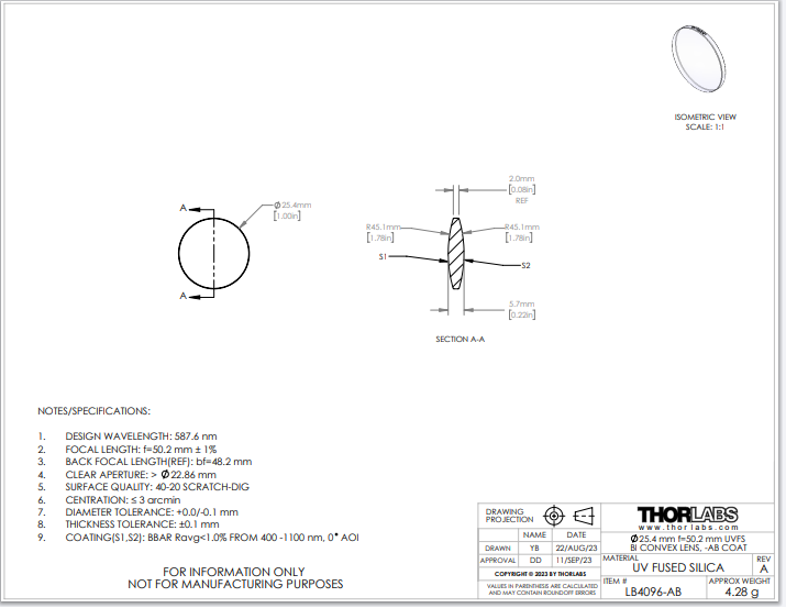 型号 LB4096-AB 双凸透镜 品牌 THORLABS 索雷博