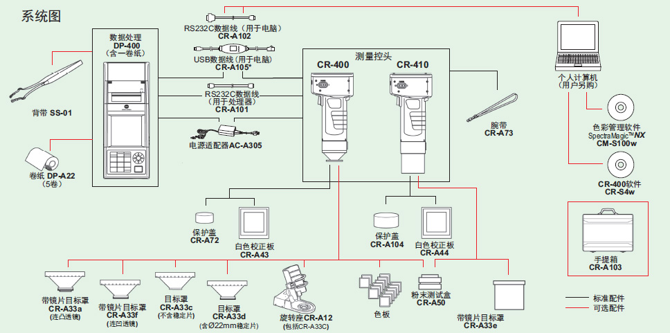 | 标准色*2 | 与测量探头连接以后可以存储100个数据,亦可以通过输入的方式将数据存储在处理器里面 |