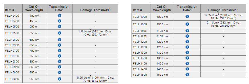 Thorlabs索雷博 FELH1350 Ø25.0 mm长波通滤光片