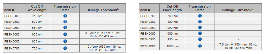 Thorlabs索雷博 FESH0650 Ø25.0 mm短波通滤光片
