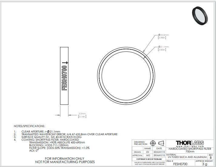 Thorlabs索雷博 FESH0700 Ø25.0 mm短波通滤光片