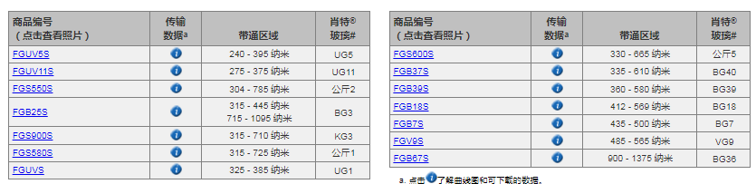 | 材料 | Schott® Colored Glass |