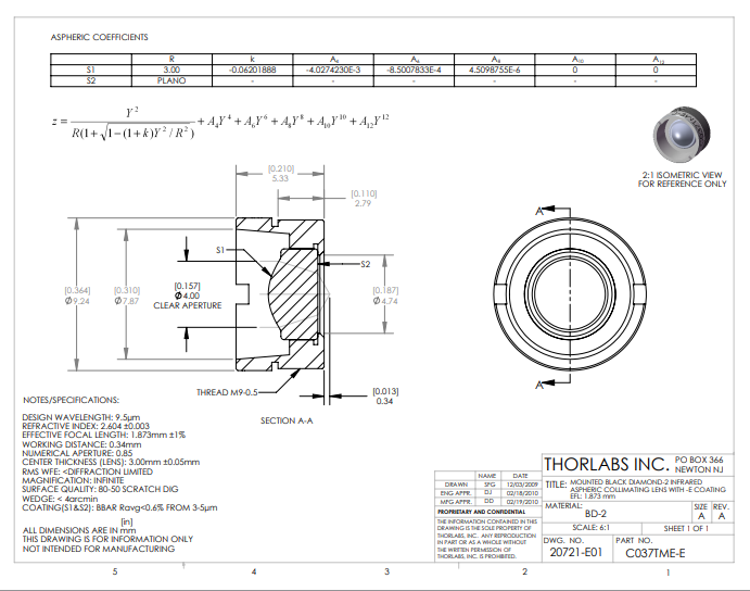 Thorlabs索雷博 C037TME-E 非球面透镜