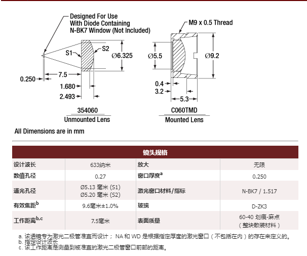 Thorlabs索雷博 C060TMD-B 非球面透镜
