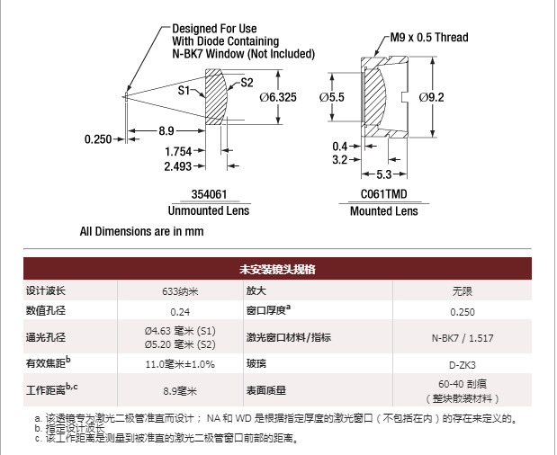 C061TMD-C 非球面透镜