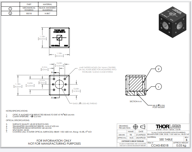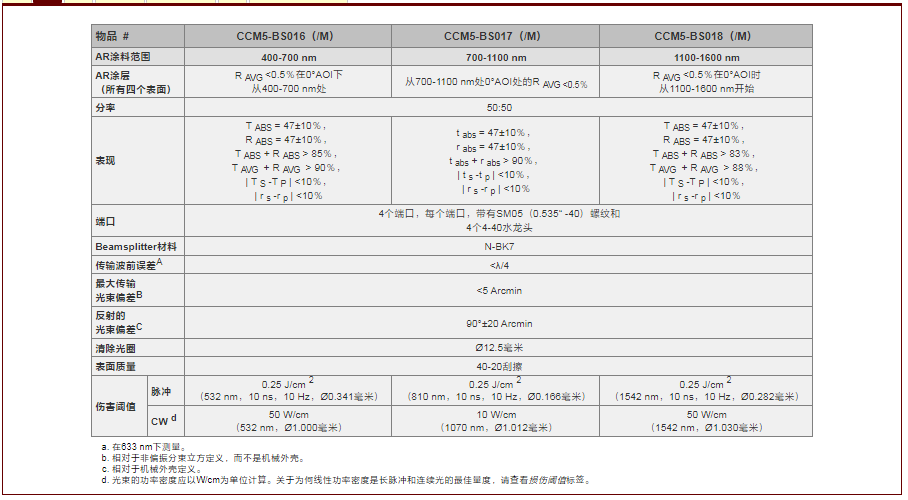 Thorlabs索雷博 CCM5-BS018 - 非偏振分束器