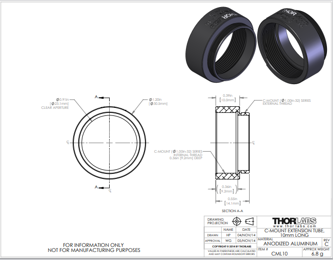 Thorlabs索雷博 CML10 - C-Mount延长管