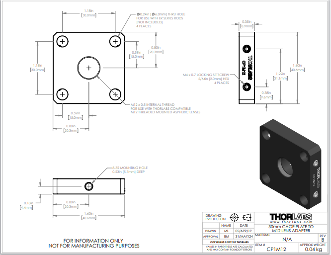 THORLABS 索雷博 CP1M12 - 30 mm笼板