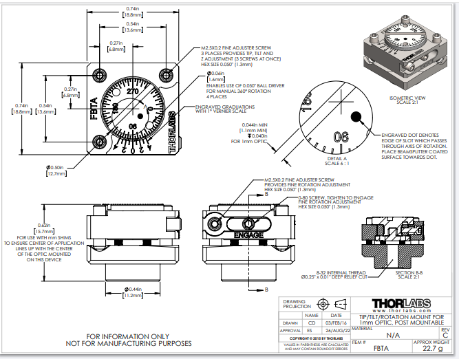 THORLABS 索雷博 FBTA - 旋转调整架