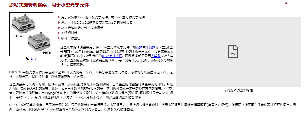 Thorlabs索雷博 FBTB/M - 旋转调整架