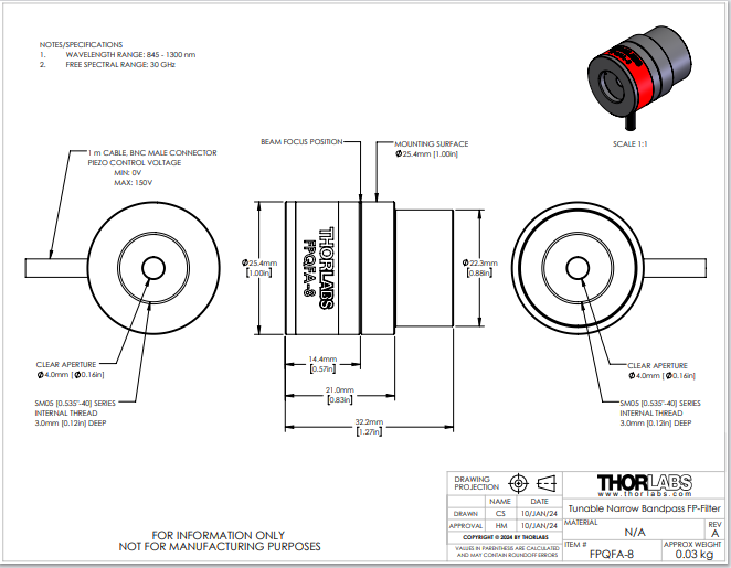 Thorlabs索雷博 FPQFA-8 - 法布里-珀罗滤光器