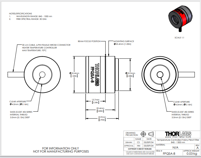 Thorlabs索雷博 FPQSA-8 - 法布里-珀罗滤光器