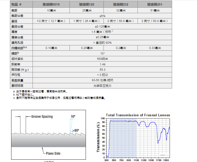 THORLABS 索雷博 FRP0510 菲涅尔透镜