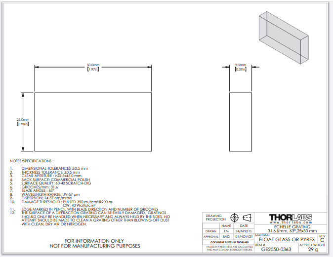 Thorlabs索雷博 GE2550-0363 - 阶梯光栅