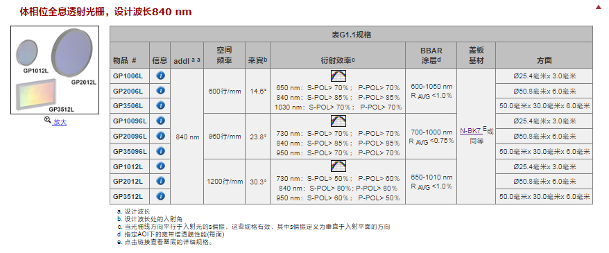 Thorlabs索雷博 GP1012L - 体相位全息透射光栅