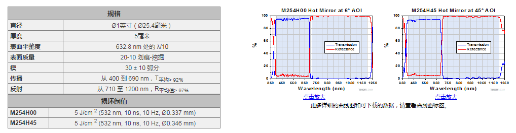 Thorlabs索雷博 M254H45 热镜