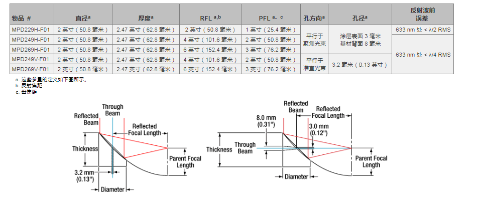 Thorlabs索雷博       MPD269H-F01   90°离轴抛物面反射镜