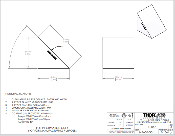 THORLABS 索雷博    MRA50-G01 直角棱镜反射镜