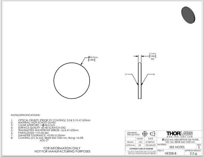 THORLABS 索雷博 NE30B-B 中性密度滤光片