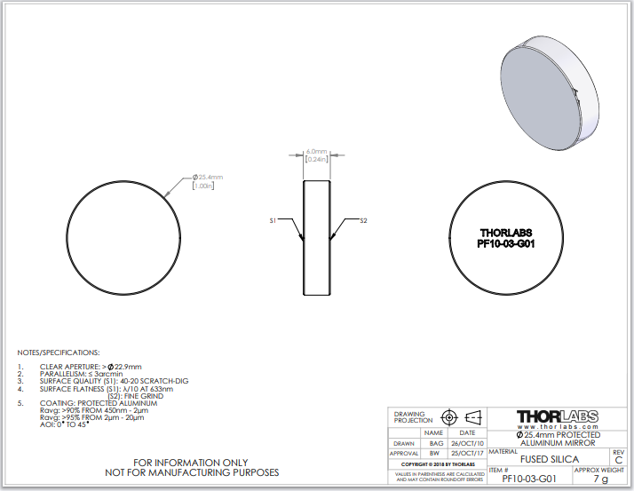 Thorlabs索雷博 PF10-03-G01 平面反射镜