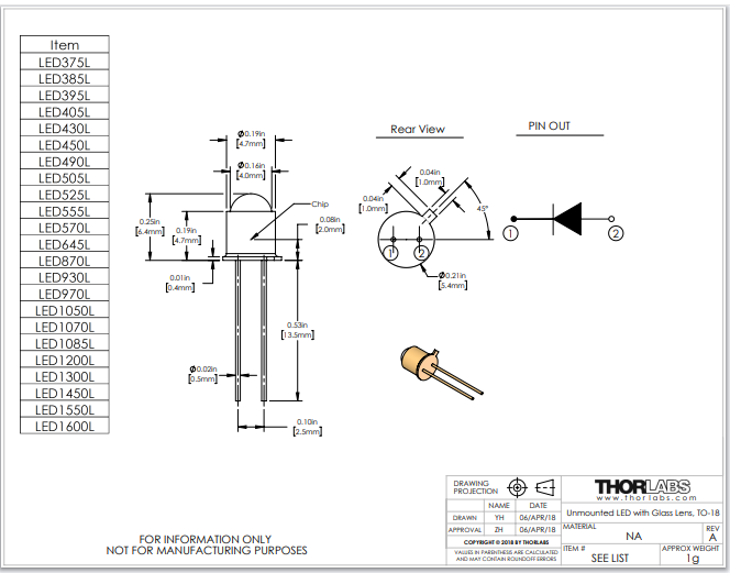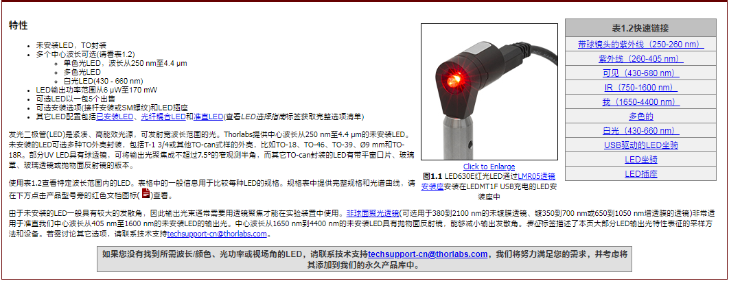 Thorlabs索雷博 LED1070L - 1070 nm LED