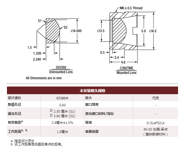 型号 355392-C 非球面透镜 品牌 THORLABS 索雷博
