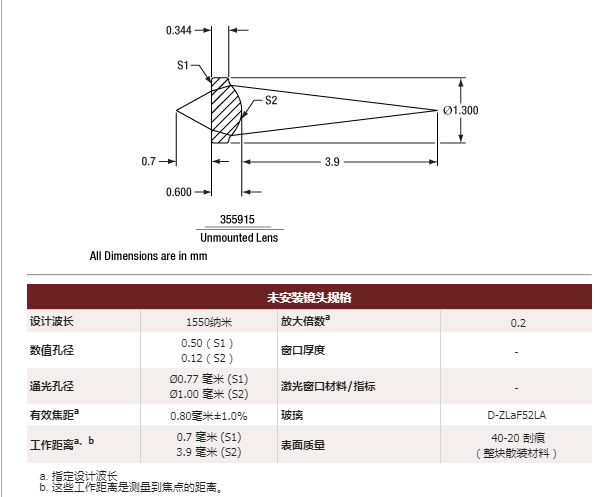型号 355915 非球面透镜 品牌 THORLABS 索雷博