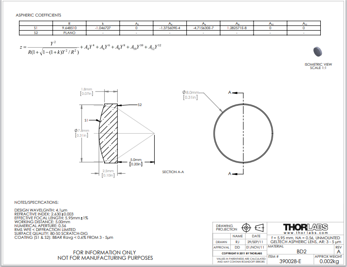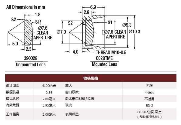 | 折射率a | 2.5 µm 时为 2.630 ± 0.003 | 2.795 ± 0.003 @ 3.5 µm |