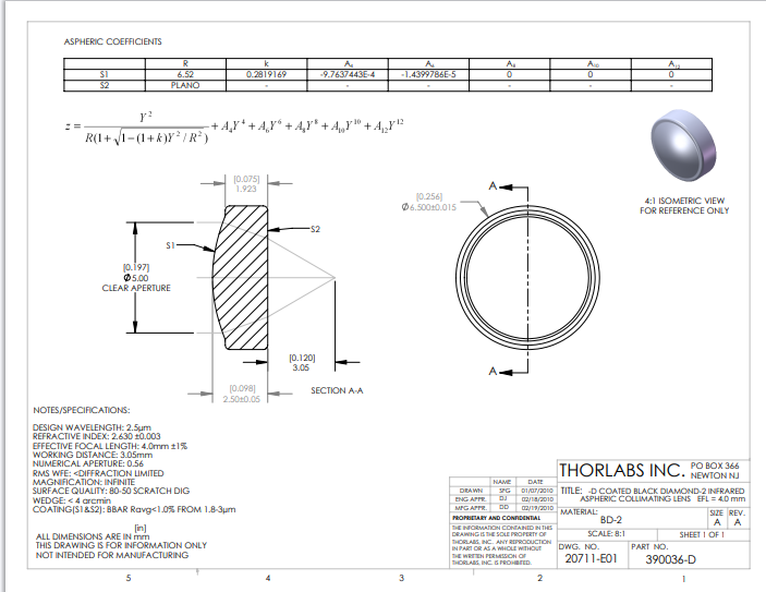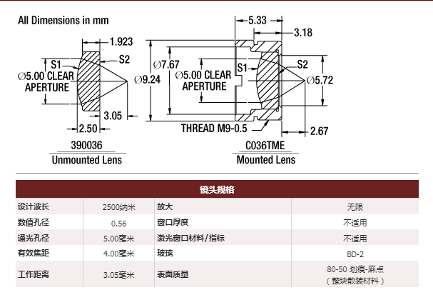 | 折射率a | 2.5 µm 时为 2.630 ± 0.003 | 2.795 ± 0.003 @ 3.5 µm |