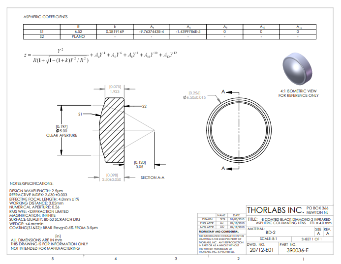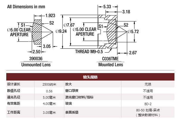 | 折射率a | 2.5 µm 时为 2.630 ± 0.003 | 2.795 ± 0.003 @ 3.5 µm |