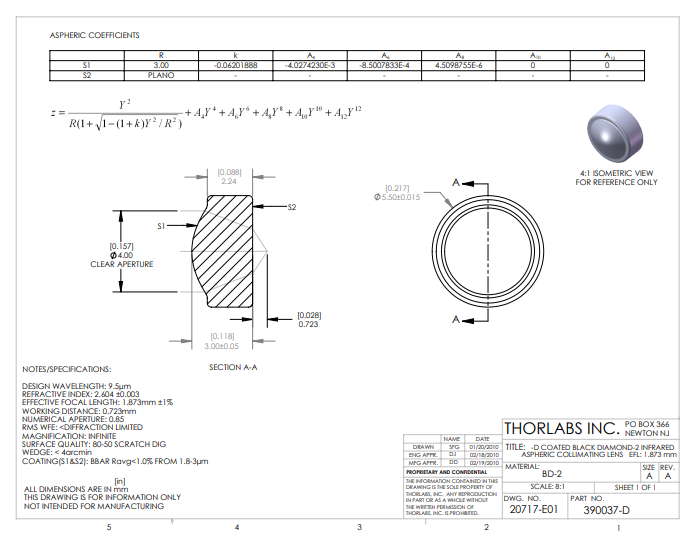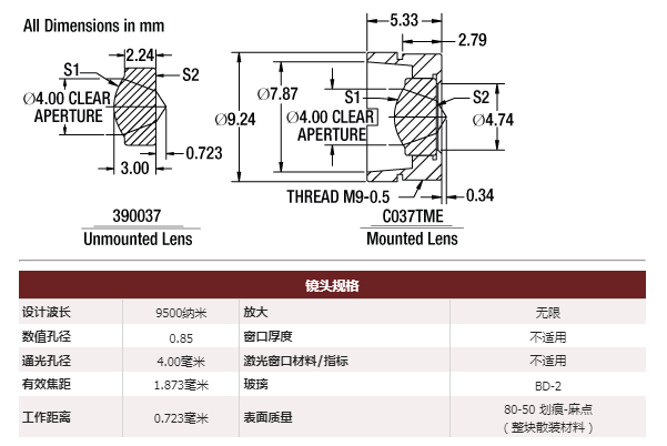 | 折射率a | 2.5 µm 时为 2.630 ± 0.003 | 2.795 ± 0.003 @ 3.5 µm |