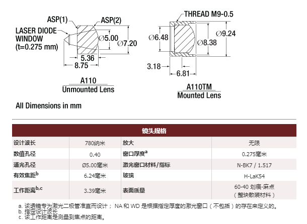 A110-C 非球面透镜