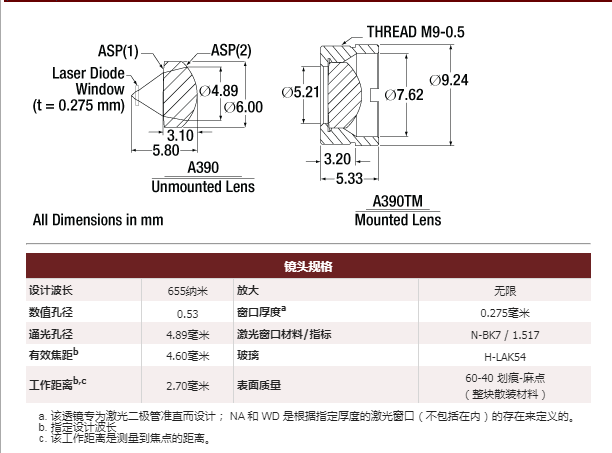 A390TM-B 非球面透镜
