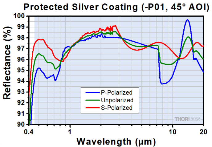 | 涂层 | 受保护的铝 (产品编号以 -G01 结尾) | 受保护的银 (商品编号以 -P01 结尾) | 受保护的黄金 (商品编号以 -M01 结尾) |
