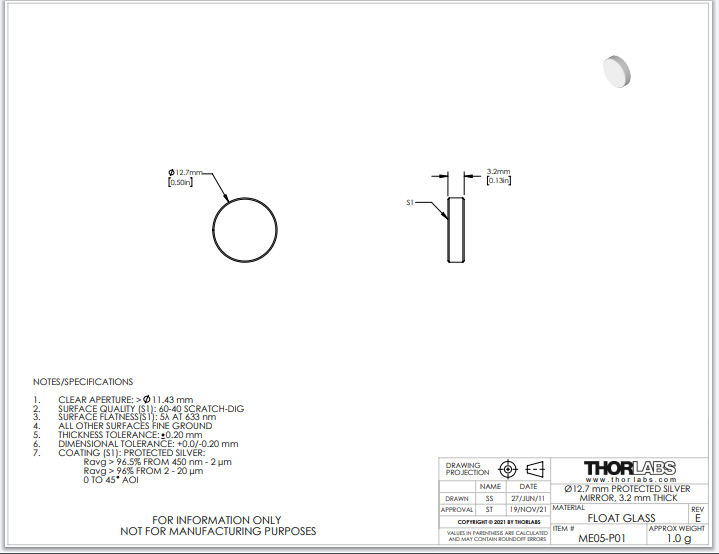 Thorlabs索雷博 ME05-P01 平面反射镜
