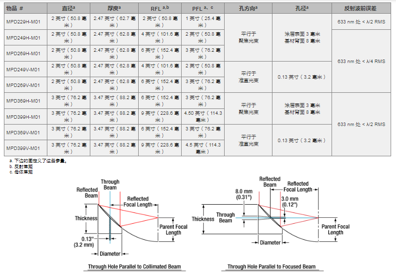 | 通光孔径 | >直径a的 90% ,不包括孔 |